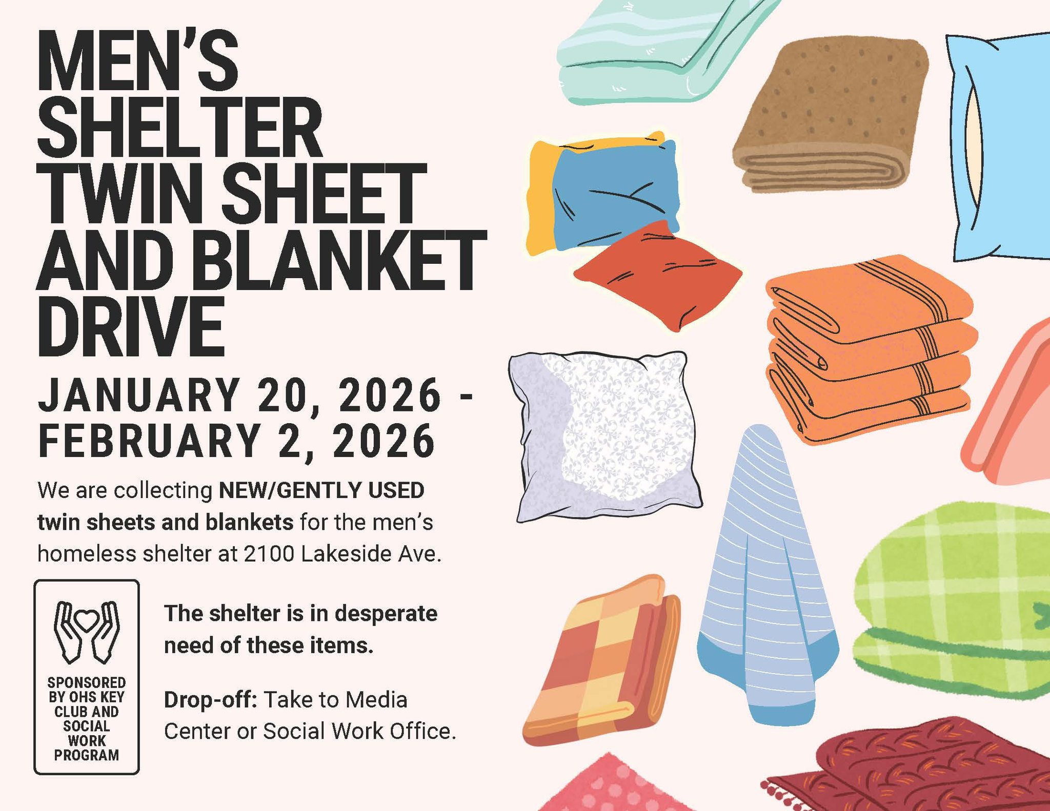 Please help our Key Club students help others! If you are able to assist, please drop off bedding at Orange High School, 32000 Chagrin Blvd. in Pepper Pike, until February 2nd. Thank you!